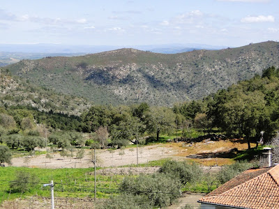 Basta descer a encosta de sobreiros e pinheiros para vermos a ponte atravessando o vale coberto de ervas floridas. Ao fundo a Mata imponente no seu gigantesco anfiteatro de granito.
