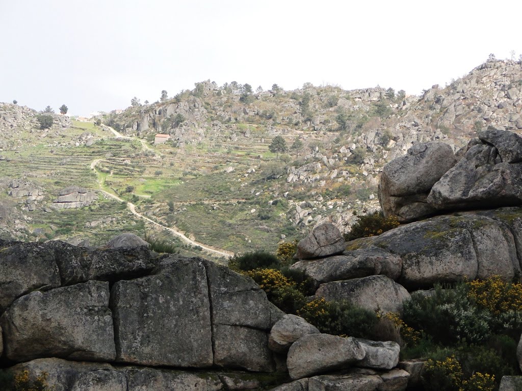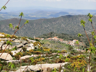 Neste "Abril de águas mil" o tempo está incerto, a meio desta tarde de Sábado o sol aquece bem mas é uma ameaça de tempestade. Entre os penhascos graníticos as cores da Primavera vão despontando aqui e ali. Quase à chegada o primeiro aguaceiro lembra-me que hoje posso ter de ficar em casa! Vamos ver. Por enquanto só chove nos Codeçais e de além do rio.