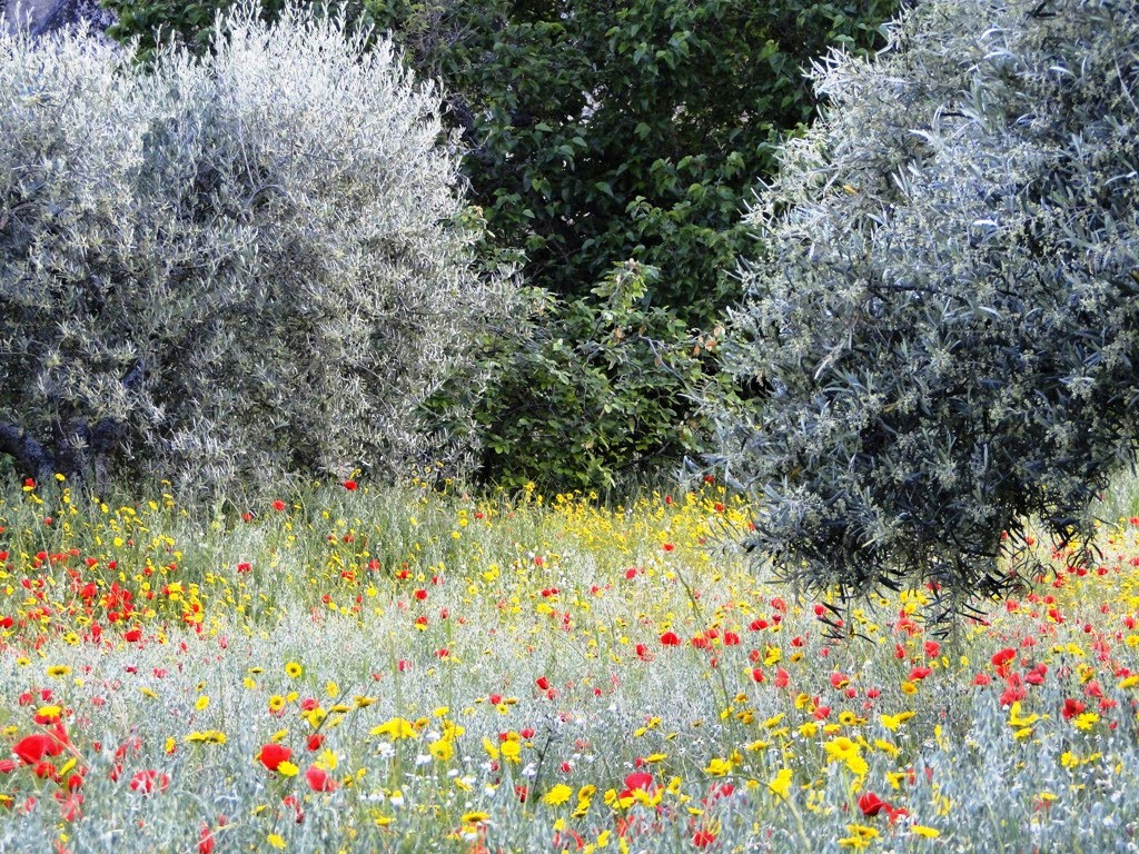 As maias fazem jus ao nome, deixam um colorido intenso que combina bem com as grandes formações graníticas típicas de Pereiros.